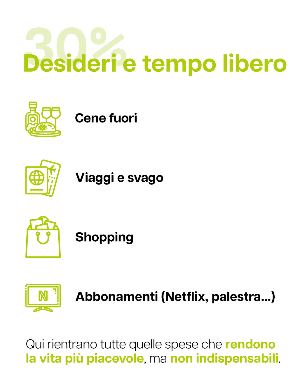 • 30% per desideri e tempo libero